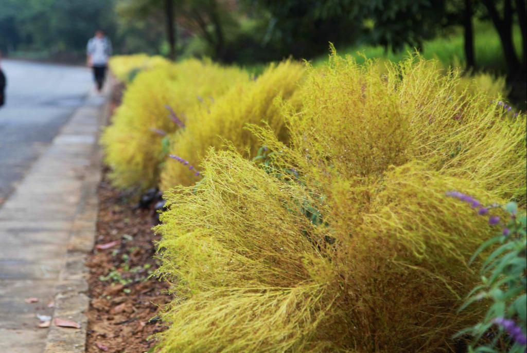 新添的花草鮮活了校園