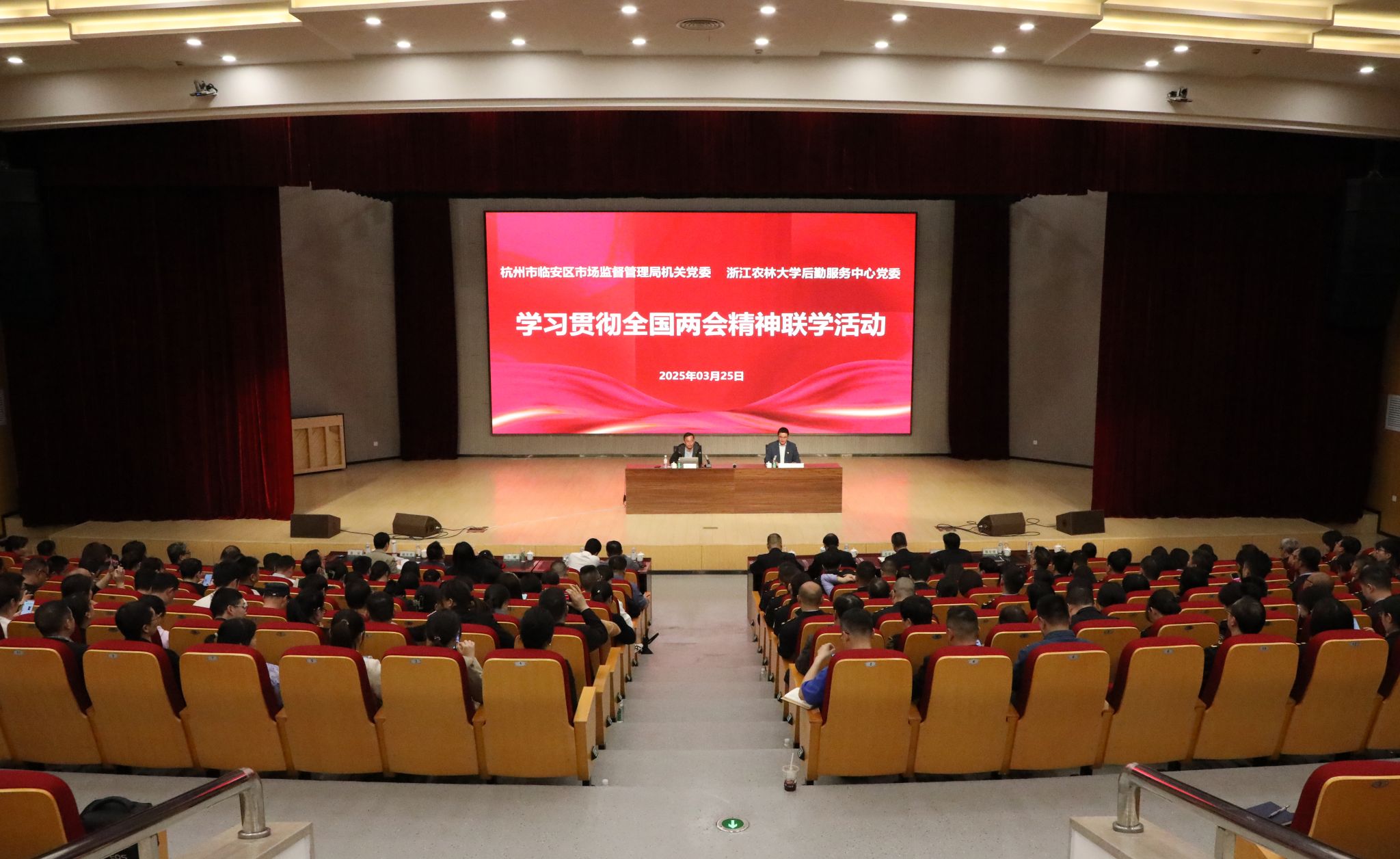 3月25日,后勤中心黨委聯合臨安區市場監督管理局機關黨委開展學習貫徹全國兩會精神聯學活動。活動邀請了我校馬克思主義學院周柏春教授作學習全國兩會精神專題輔導。臨安區市場監督管理局黨委班子成員、局屬全體黨組織書記、全體黨員;后勤中心黨委理論學習中心組成員、各黨支部書記、全體管理干部及全體黨員參加會議。