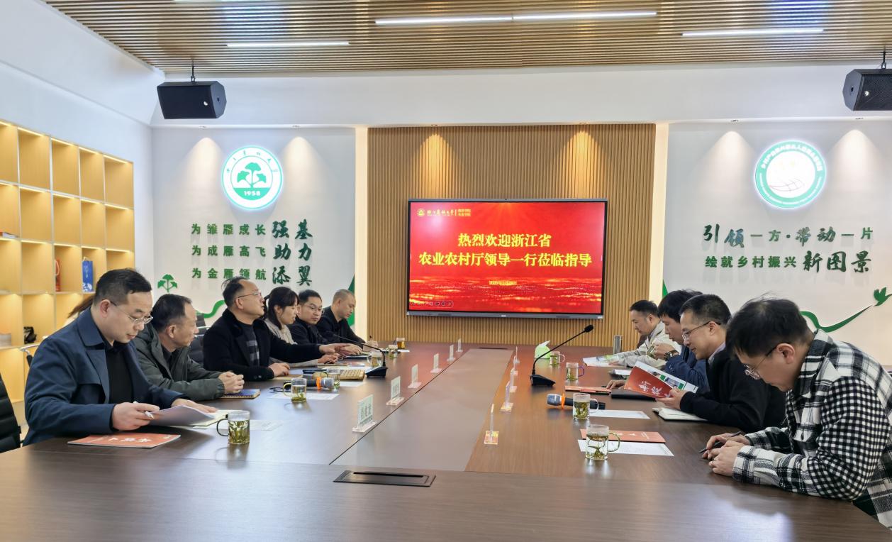 3月28日,浙江省農業農村廳“現代新農人培育專班”周開君副處長一行到繼教學院調研指導,學院領導班子參加座談。